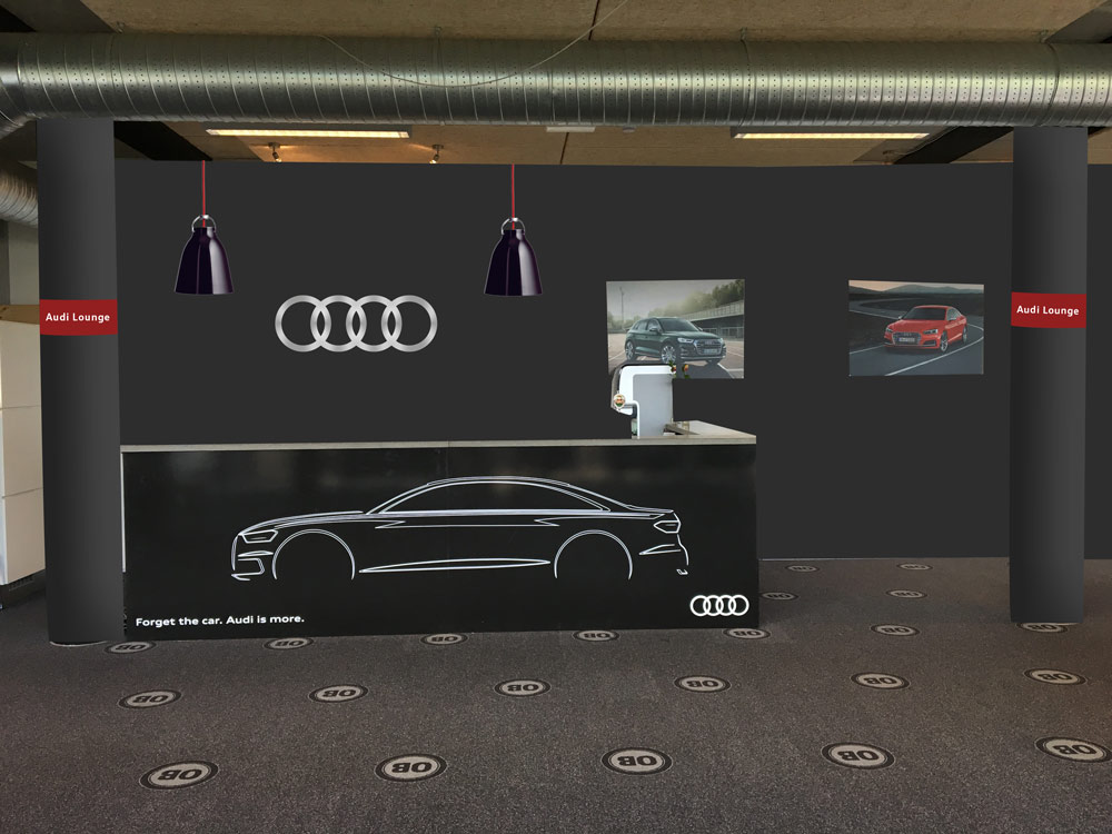 Mit oplæg til Barfoed Group Tribunen (tidligere Thansen.dk Tribunen) og oplæg/design af Audi Lounge på Nature Energy Park.